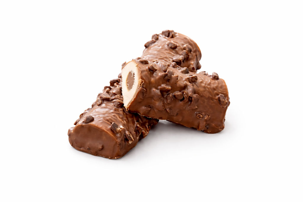 Aasted technology enables the production of bars with an enclosed second mass using co-extrusion of filling masses, such as caramel or other soft fillings. After forming, the products can be enrobed with chocolate. The solution supports consistent product quality at industrial production scale.