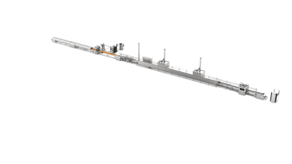 - Modular two-belt system ensures flexible dough control.